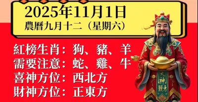 小運播報2025 年 11 月 1 日(星期六)農曆九月十二