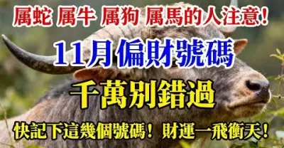 屬蛇 屬牛 屬狗 屬馬的人注意!11月偏財號碼千萬別錯過,快記下這幾個號碼!財運一飛沖天!