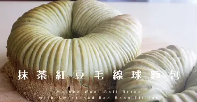 Matcha Wool Roll Bread with Sweetened Red Bean Filling 抹茶毛線球麵包卷紅豆餡,直接法依然鬆軟牽絲!