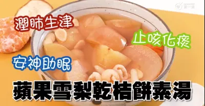 秋日靚湯|潤肺生津|止咳化痰|安神助眠|蘋果雪梨乾桔餅素湯